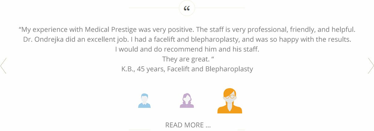 Take a look at the photos of our satisfied clients. You can see results of surgeries such as breast augmentation, rhinoplasty, liposuction or facelift done by our plastic surgeons – MUDr. Kulhánek MBA, MUDr. Ondrejka, MUDr. Puls, CSc. and MUDr. Horyna.